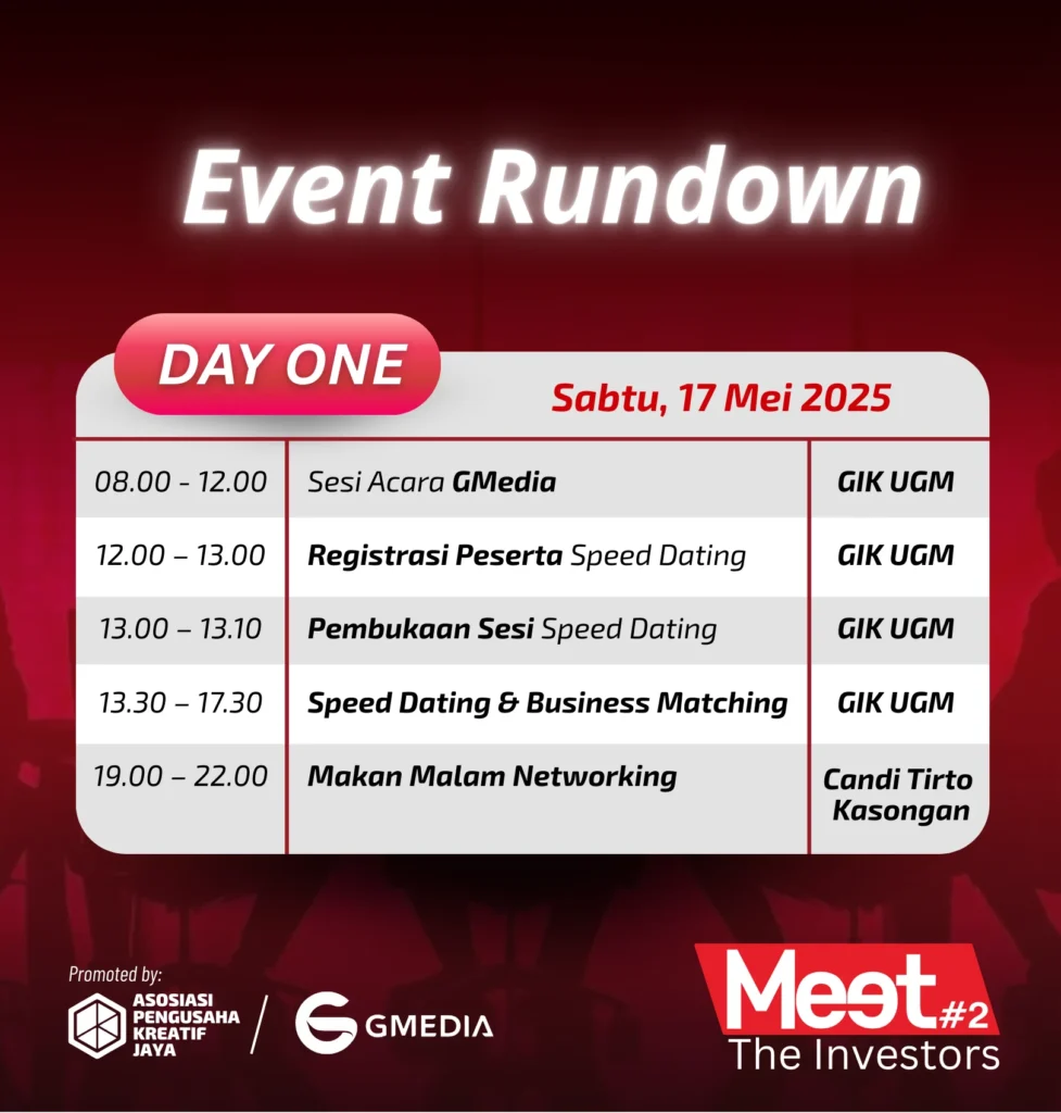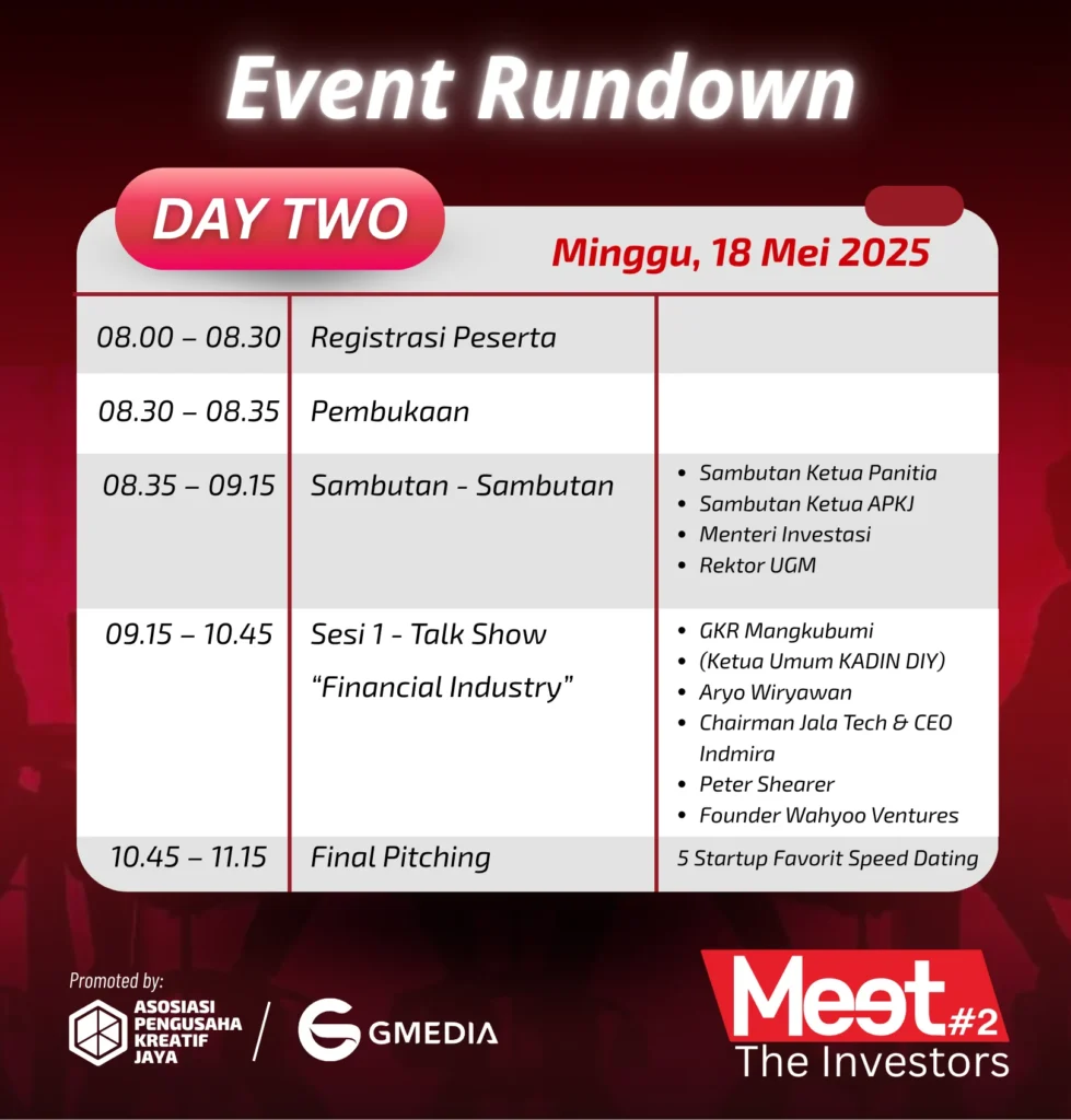 Apakah bisnismu siap naik level? Meet The Investors #2 hadir untuk mempertemukan startup dan entrepreneur dengan 30+ top investor dari 5 negara!